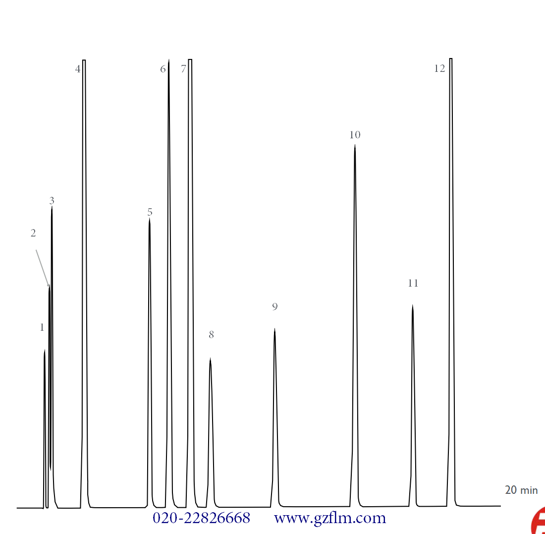 消費(fèi)者在購買食品時(shí)也應(yīng)注意查看食品配料表和營養(yǎng)成分表等信息,了解食品中是否添加了二氧化硫或其鹽類作為食品添加劑,并合理控制攝入量。同時(shí),對(duì)于顏色過白、過于鮮亮或有刺激性氣味的食品應(yīng)保持警惕,避免購買和食用可能過量添加二氧化硫的食品。 Sulfur compounds Column: FBX-VOC 2 - 0.53mm, 5.00μm, 30m Conditions: Oven Program: 30°C, 5°C/min, 130°C Carrier Gas: Hydrogen, 3.8mL/min Injector: 200°C Detector: FPD, 200°C Peak identification 1.Hydrogen sulfide 2.Carbonyl sulfide 3.Sulfur dioxide 4.Methanethiol 5.Methyl sulfide 6.Ethanethiol 7.Carbon disulfide 8.2-propanethiol 9.1-propanethiol 10.Thiophene 11.1-butanethiol 12.Methyl disulfide ![]() |