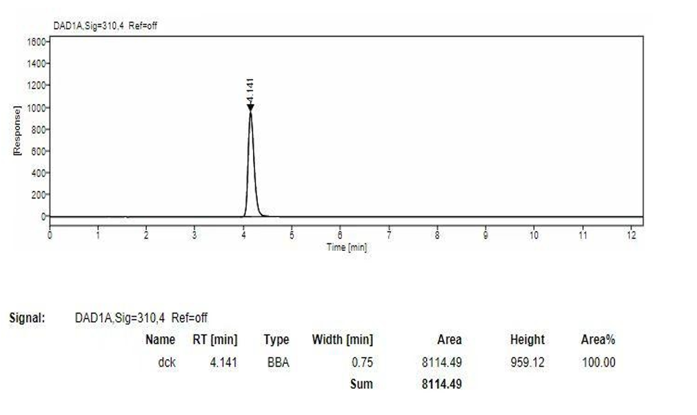 App ID: FLM-T240011 Titank C18 柱對敵草快二氯鹽、烯酰嗎啉、苯嘧磺草胺檢測 方法:CCPIA 團體標(biāo)準 T/CCPIA 217—2023 色譜柱:Titank C18 5μm 150×4.6 mm (貨號:FMF-5560-EONU) 柱溫:25C° 流速:1ml/min 敵草二綠鹽: 流動相:乙腈:庚烷磺酸鈉=10:90 波長:310nm 色譜圖: