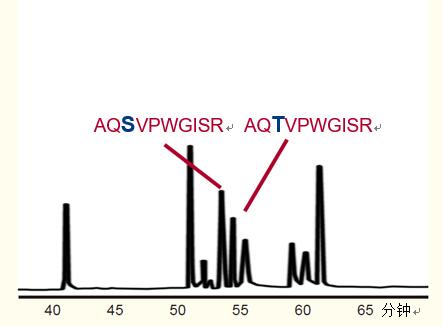 在圖2中,兩種多肽盡管只有一個(gè)氨基酸的差異,即絲氨酸對(duì)蘇氨酸,但也得到了完全的分離。